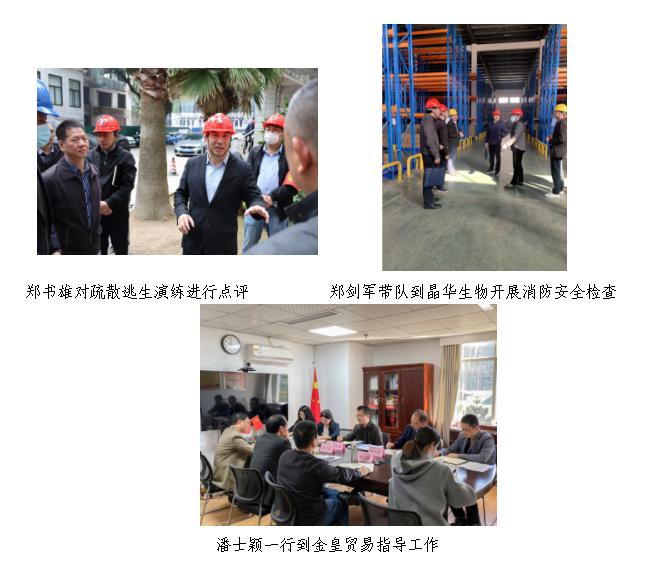 一是四下基層大督查。福建輕紡高度重視相關(guān)工作,多次召開會(huì)議,持續(xù)深入學(xué)習(xí)貫徹落實(shí)習(xí)近平總書記關(guān)于安全生產(chǎn)和消防工作的重要指示批示精神,全面構(gòu)建“黨政同責(zé)、一崗雙責(zé)、齊抓共管、失職追責(zé)”和“三管三必須”的消防安全防控體系。領(lǐng)導(dǎo)干部弘揚(yáng)“四下基層”優(yōu)良作風(fēng),重心下移,多次到基層督導(dǎo)檢查工作。黨委副書記、副董事長、總經(jīng)理鄭書雄帶隊(duì)觀摩金皇物業(yè)疏散逃生演練并對(duì)其存在的不足之處提出具體意見;黨委委員、總會(huì)計(jì)師鄭劍軍帶隊(duì)到晶華生物開展消防安全檢查及生產(chǎn)經(jīng)營調(diào)研工作;黨委委員、紀(jì)委書記、監(jiān)察專員潘士穎一行到金皇貿(mào)易針對(duì)金皇大廈設(shè)施設(shè)備老化的安全隱患等問題交流解決思路。