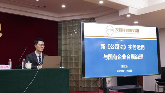為深入學(xué)習(xí)貫徹習(xí)近平法治思想,落實全面依法治國戰(zhàn)略部署,2024年11月1日,福建輕紡開展2024年度依法治企培訓(xùn)班,邀請福建麥博律師事務(wù)所合伙人魏致遠(yuǎn)律師開展《新<公司法>實務(wù)運用與國有企業(yè)合規(guī)治理》主題培訓(xùn)。