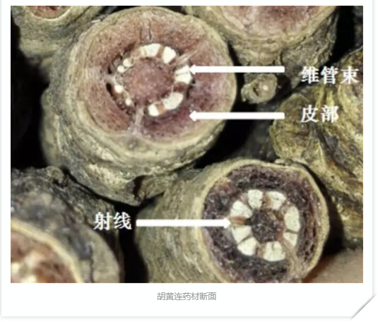 初學(xué)中藥材性狀鑒定,覺(jué)得“八哥眼”這個(gè)詞尤為神奇,細(xì)查資料,發(fā)現(xiàn)其特指藥材胡黃連的斷面。因胡黃連藥材斷面為棕-白-棕的配置,酷似“八哥”的眼睛,因此得名,古語(yǔ)(《新修本草》)有云,“根頭似鳥(niǎo)嘴,折之肉似鳥(niǎo)眼”。 胡黃連在唐朝就開(kāi)始使用,但均為進(jìn)口貨—“出波斯國(guó),生海畔陸地,八月上旬采”,因我國(guó)人民習(xí)慣把外族(國(guó))人稱為胡人,其藥性、功效又與黃連相似,遂取名“胡黃連”。