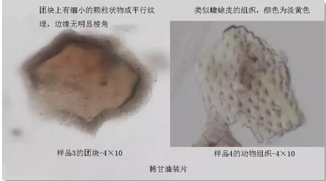 與在樣品4中發(fā)現(xiàn)的動(dòng)物組織相比,更令我驚訝的是在樣品1、2中發(fā)現(xiàn)了淀粉顆粒,不過這無色透明呈卵圓形的淀粉粒看著還蠻晶瑩剔透的,只是可惜了都是偽品吶,要知道蟾酥很貴的好不,不要什么淀粉、泥砂、牙膏、肥皂都拿來充次好嗎?