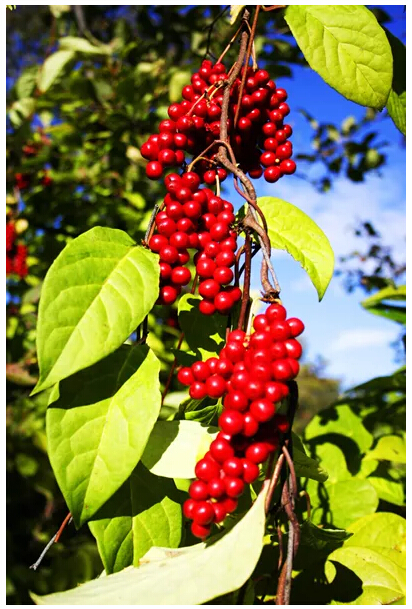 自此,苦娃就在深山老林里開荒種地,過上了舒心的日子。每年的這一天他都不忘到這里祭拜這些果樹。后來,這些爬蔓的樹所結(jié)之果的籽落地發(fā)芽長出新藤,新藤再結(jié)新果,數(shù)年后,五味子遍布長白山腳下。
