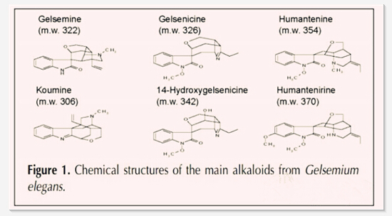 下圖是鉤吻中最重要的六種生物堿。
