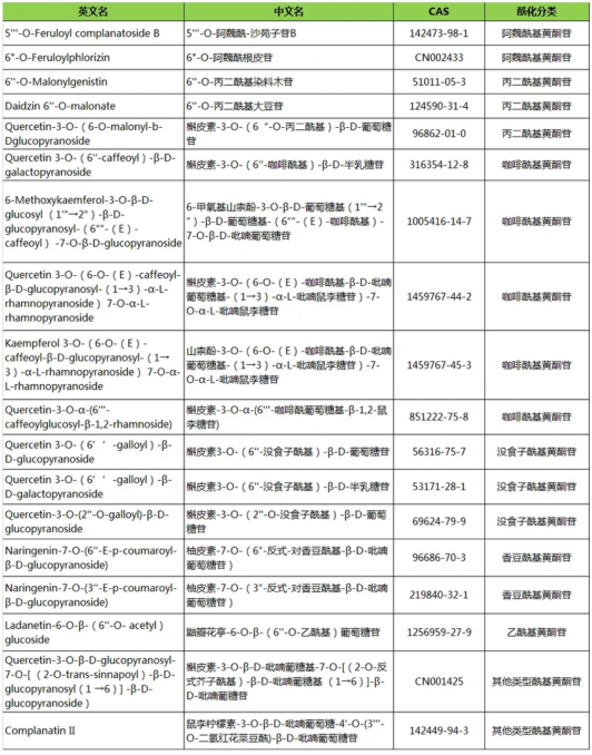 近年來,大量研究發(fā)現(xiàn)?;S酮糖苷類化合物在許多植物藥中廣泛分布。相較于黃酮苷,酰基化結(jié)構(gòu)穩(wěn)定性與脂溶性更好,生物利用率高,療效更顯著;?;揎椧舱鸩匠蔀樗幬镅邪l(fā)領(lǐng)域的熱點(diǎn)之一。?;S酮苷主要具有以下生物活性: