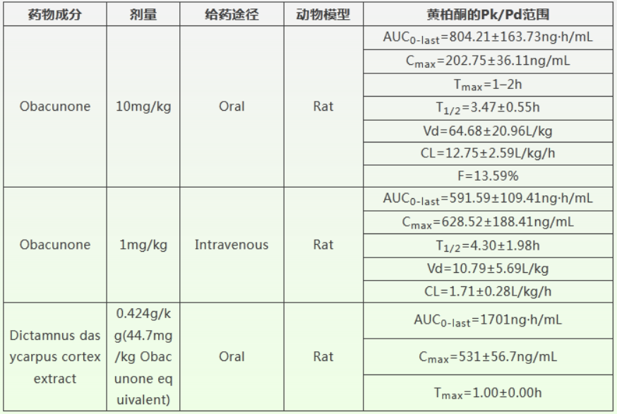 檸檬苦素類化合物黃柏酮:藥理活性作用與藥代動(dòng)力學(xué)特征