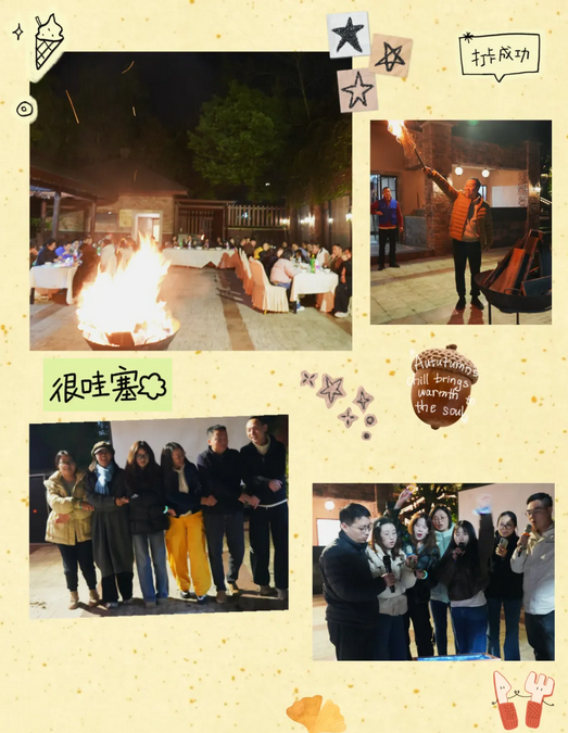 夜幕低垂,繁星綴滿天空,紅楓嶺的篝火晚會(huì)悄然拉開(kāi)帷幕!熊熊燃燒的篝火映照著每一張洋溢著笑容的臉龐,不僅驅(qū)散了秋夜的絲絲寒意,也點(diǎn)燃了每一位普思人心中的熱情與活力。大家圍爐共話、載歌載舞,在溫暖氛圍中拉近了彼此的距離。