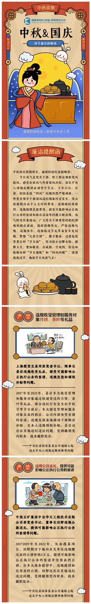 中秋國(guó)慶廉潔提醒函——福建輕紡紀(jì)委