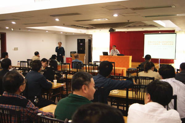 4月28日下午,省輕紡控股公司邀請省委黨校林建華教授到公司開展“完善憲法為核心的中國特色社會主義法律體系,加強憲法實施”主題講座??毓晒颈静克袉T工,權屬企業(yè)領導等共100余人參加了主題講座。