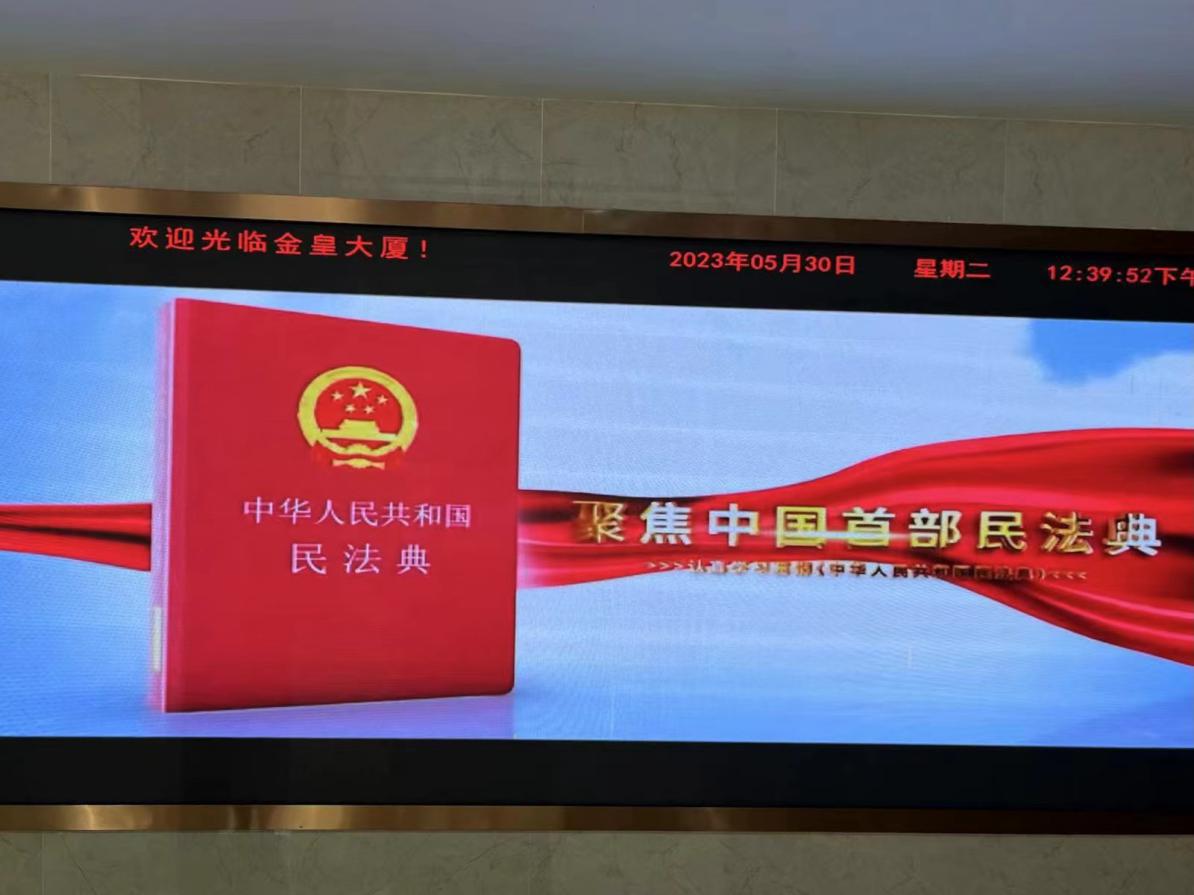 控股公司利用公司網(wǎng)站發(fā)布解讀民法典專題文章,利用LED電子顯示屏滾動播放宣傳海報及宣傳片;發(fā)放民法典宣傳手冊,對網(wǎng)絡(luò)虛擬財產(chǎn)、見義勇為、居住權(quán)、高空拋物等進行案例和法條普法。