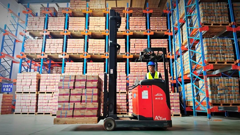 (省級食鹽儲備庫內(nèi),叉車正在有序作業(yè),彰顯現(xiàn)代化保供能力)