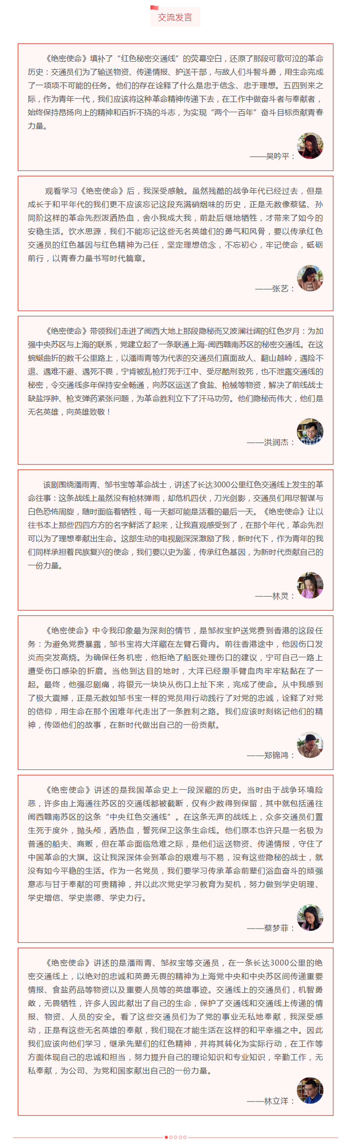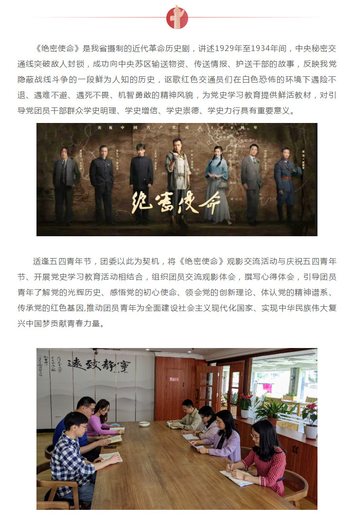 福建輕紡團委組織召開“迎五四·學(xué)黨史”之《絕密使命》觀影交流活動(一)