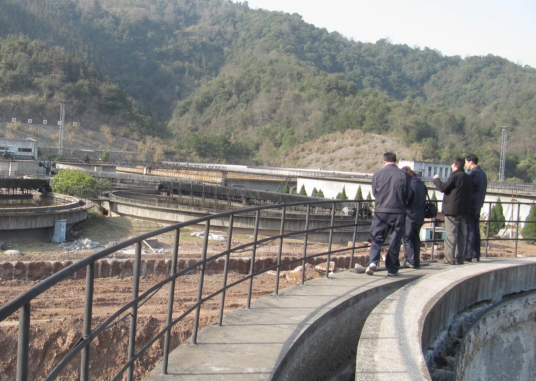 上圖為檢查組在青山紙業(yè)污水深度處理技改項(xiàng)目施工現(xiàn)場(chǎng)檢查