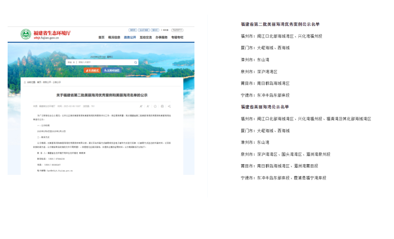 美麗海灣建設(shè)是美麗中國建設(shè)在海洋領(lǐng)域的集中體現(xiàn)和重要載體。為進(jìn)一步引導(dǎo)、推動(dòng)全省美麗海灣建設(shè),近日,福建省生態(tài)環(huán)境廳公示了福建省第二批美麗海灣優(yōu)秀案例和美麗海灣名單。其中,由金皇環(huán)保協(xié)助地方申報(bào)的海灣中,有3個(gè)獲評福建省第二批美麗海灣優(yōu)秀案例,6個(gè)獲評福建省美麗海灣。