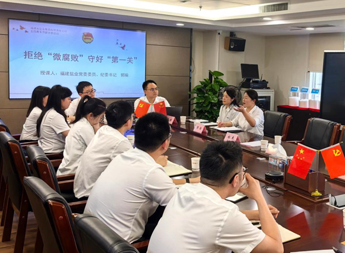 活動(dòng)現(xiàn)場(chǎng),福建鹽業(yè)在司領(lǐng)導(dǎo)班子成員分別為全體福鹽青年送出寄語(yǔ)。福建鹽業(yè)黨委委員、常務(wù)副總經(jīng)理林杰指出,青年員工要充分利用公司“師帶徒”制度,錘煉團(tuán)結(jié)協(xié)作的優(yōu)良品格,堅(jiān)定“奮斗者為本”的信念,在福建鹽業(yè)高質(zhì)量發(fā)展的新征程中勇當(dāng)先鋒。各分管領(lǐng)導(dǎo)分別結(jié)合從業(yè)經(jīng)驗(yàn)暢談感悟,對(duì)青年提出期望。隨后,福建鹽業(yè)黨委委員、紀(jì)委書(shū)記郭瑜作“拒絕‘微腐敗’,守好‘第一關(guān)’”專(zhuān)題廉潔教育課,生動(dòng)的廉政課讓青年干部深受教育,紛紛表示要在企業(yè)改革發(fā)展中以“廉鹽精神”書(shū)寫(xiě)新時(shí)代的青春答卷。