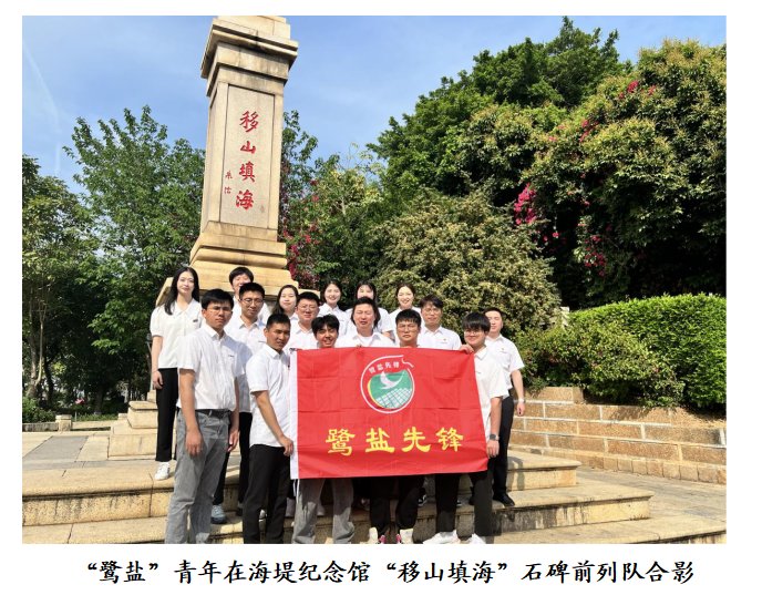 在海堤紀念館“移山填?!奔o念石碑前,全體青年職工整齊列隊,莊嚴宣誓“堅守‘匠心’,守護‘閩鹽’薪火;勇?lián)姑P青春力量!” 鏗鏘有力的誓言在海岸邊久久回蕩,表達了“鷺鹽”青年們傳承先輩精神、勇?lián)鷷r代重任的堅定決心。