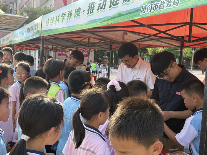 廈門鹽業(yè)聯(lián)合市疾控中心開展碘健康科普活動。在社區(qū)與商超,通過懸掛橫幅、發(fā)放手冊等形式擴大宣傳面;在海滄東孚中心小學(xué),通過趣味答題、鹽品品鑒和健康咨詢互動板塊,借助碘缺乏病病理模型和鹽品實物展示,生動普及碘缺乏病防治知識,向?qū)W生家長講解缺碘對兒童智力發(fā)育的危害及科學(xué)補碘方法。