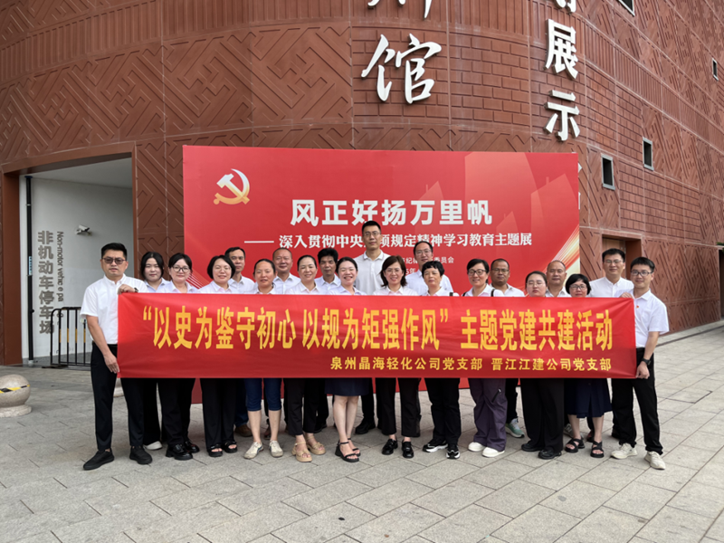 “清風護航”叩初心,“聯(lián)學共促”礪擔當。不久前,晶海輕化黨支部聯(lián)合晉江江建公司黨支部開展“以史為鑒守初心 以規(guī)為矩強作風”主題黨日活動,為重點項目建設注入“廉動力”。活動中,黨員干部在清廉泉州館開展廉政警示教育,重溫入黨誓詞。在交流環(huán)節(jié),雙方聚焦“黨建+”模式賦能工程建設、“清廉+”理念護航項目攻堅等創(chuàng)新路徑,深入探討如何將黨組織戰(zhàn)斗力轉化為項目攻堅執(zhí)行力,以黨建共建凝聚廉潔共識、以作風建設夯實質(zhì)量根基,共同打造經(jīng)得起歷史檢驗的精品工程、廉潔工程的行動路徑。