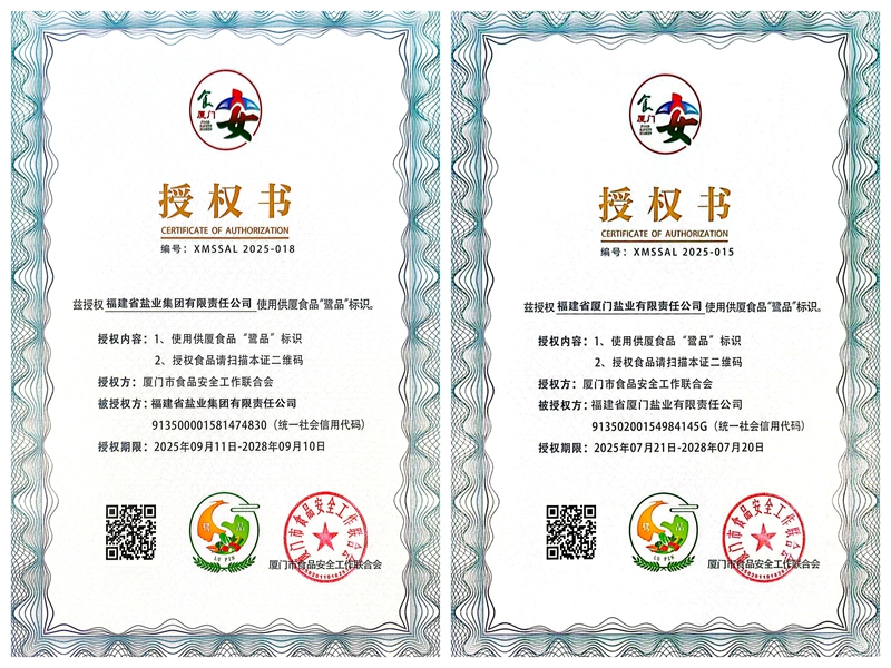 近日,廈門市食品安全宣傳周主題日活動隆重舉行,現(xiàn)場同步舉行廈門市“鷺品”標(biāo)識認(rèn)證授牌儀式,福鹽集團(tuán)及其權(quán)屬企業(yè)廈門鹽業(yè)獲得供廈食品“鷺品”標(biāo)識正式授牌。